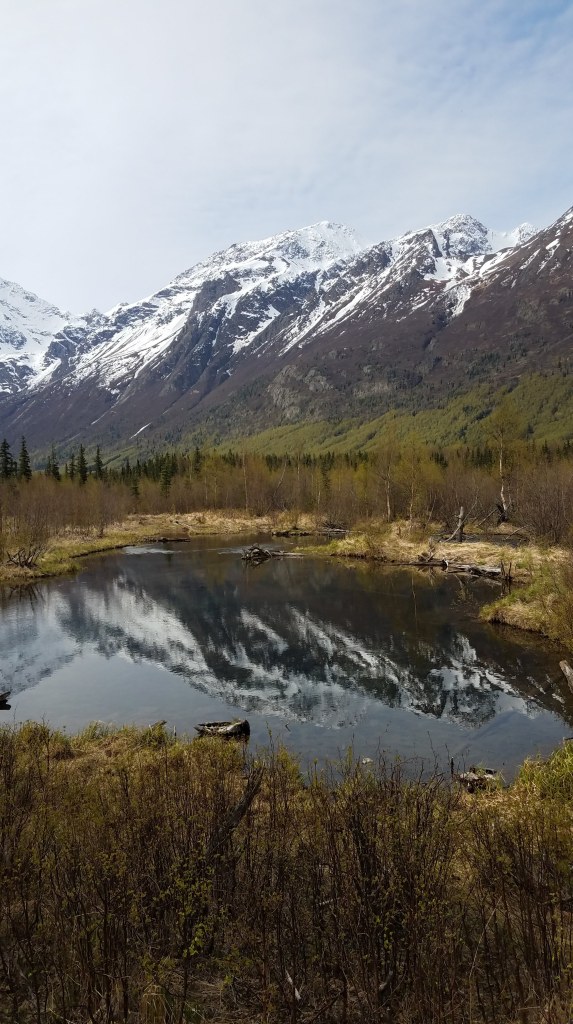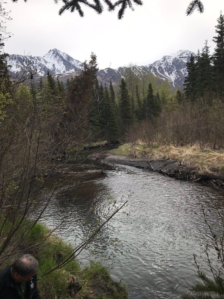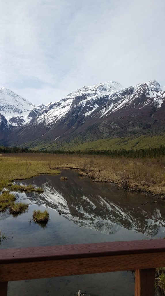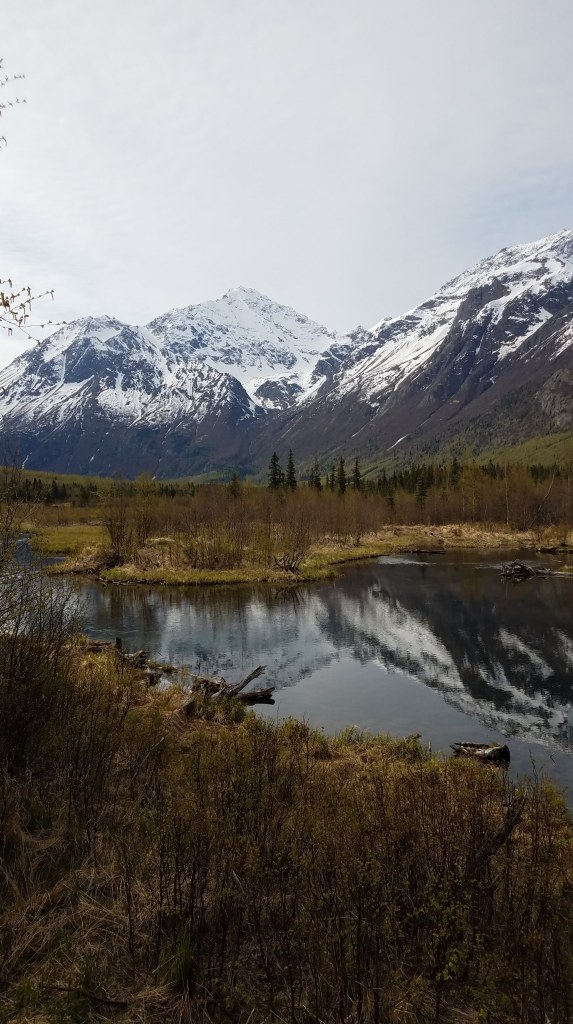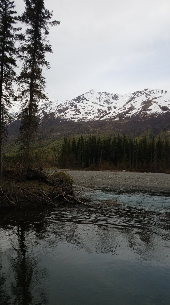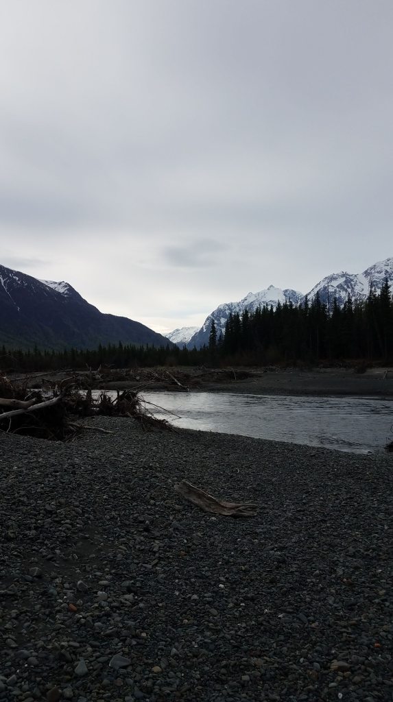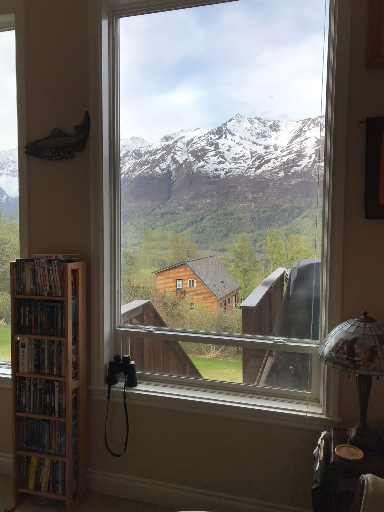 The airport is in Anchorage, so that’s where we landed at 1 am the day following our departure. Anchorage is actually a pretty populated city, so my relatives live around thirty minutes away where they’re basically a part of the wild themselves. I’m being serious. Look at the view from their window. It’s a scene out of National Geographic.